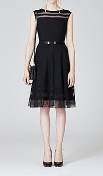 レーヨンフィラメントとストレッチナイロンを使用したコンフォートストレッチヤーンを使用したニットドレス。レーヨンのしなやかな風合いとドレープ性が特徴のニットに、エポカオリジナルのトーションレースをコンビさせました。レースやフィット&フレアのシルエットによりシンプルながら華のある1着です。