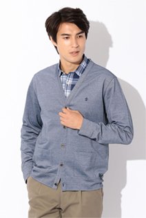 綿をスペック染めし、TOPのような見え方にした、綿ポリエステル鹿の子を使用したVネックカーディガンです。ドライなタッチがとても涼しげで、背当てにカイリーンチェックをあしらい、アクセントを付けています。