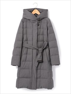 ショールのようなフード衿がデザインポイントのダウンコート。フードから続くボリュームのある衿元のデザインは、暖かいだけでなく、小顔効果も期待できます。ウエストの位置を少し高めに設定することでベルトを結んだ時にも腰高のバランスになるようにしています。素材はポリエステル/レーヨンのスパン糸を使用しているのでソフトで温かみがあるウール調の素材です。 【マッキントッシュ フィロソフィーで1月の売上着数1位】