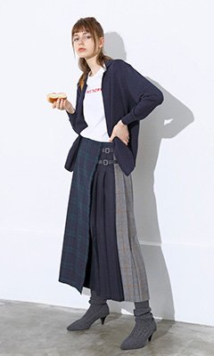 9月の販売が前年を上回った「マッキントッシュ フィロソフィー」においては、秋らしいチェック柄のロング丈のキルトスカート、同じくチェック柄のタイトスカート、ミモレ丈のふんわりしたギャザースカートなど、様々なタイプの長め丈スカートが人気となりました。