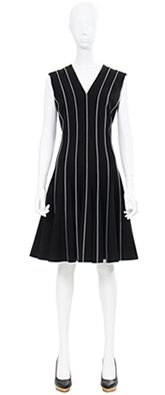 構築的な切り替えが美しいシルエットを生み出しているフィット&フレアシルエットのワンピース。(本体価格¥99,000+税)