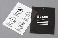 | (6) 下札 | カプセルコレクション「BLACK lab.」商品の機能が一目でお客様に伝わるよう、オリジナルの下札と絵表示下札を製品に付けて販売します。