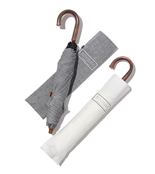 UV対策(紫外線遮蔽率90%以上)を施した晴雨兼用の折り畳み傘。シャンブレー生地に持ち手部分はラタンを使用した夏らしい1本。シンプルなデザインのためコーディネートを選ばずお使いいただけます。