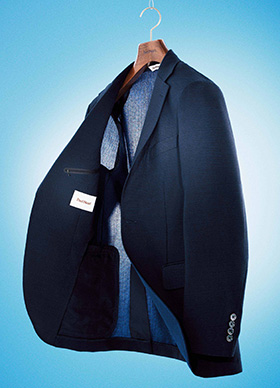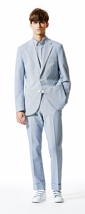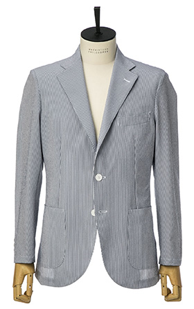 ポリエステル100%のクールマックス®ファブリックを使用。圧倒的な軽さと抜群のストレッチ性が特徴のサッカー素材です。凹凸感のある組織でさらっとしたドライタッチと肌離れの良さを感じる清涼感のあるジャケットです。ウォッシャブル、シワになりにくい、吸水速乾性などアクティブな日常を送る現代のビジネスマンを支える機能を備えています。同素材のトラウザーズ(本体価格¥16,000円+税)も展開。