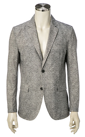 メッシュ組織であるため軽さと通気性に優れ、さらに2WAYストレッチという非常に快適な着心地のジャケットです。また、シワにもなりにくいためお手入れも簡単。インクジェットプリントでニット柄を表現し、シンプルなデザインに仕上げたクールビズにもぴったりの1着です。同素材のパンツ(本体価格¥23,000円+税)と合わせてセットアップでも着用できます。