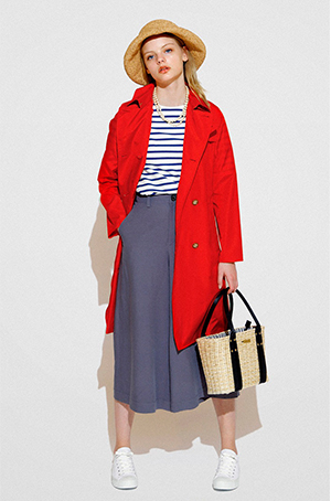 今年は毎シーズン人気の鮮やかなカラーのレインコートやレインシューズに加えて、雨を気にせず着用できる洋服として、水をはじきやすい加工を施したフラワープリントのワンピース(本体価格¥26,000+税)、上下を合わせてセットアップとしても着用できるブラウス(本体価格¥16,000+税)やタイトスカート(本体価格¥19,000+税)、マキシ丈のギャザースカート(本体価格¥19,000+税)等、トレンドアイテムに水をはじきやすい機能をもたせたウエアを6型展開いたします。梅雨の時期から蒸し暑い夏にかけて着用する商品として、家庭での水洗いができるのも特徴です。雑貨においては、定番のレインブーツのほか、雨に備えて携帯するにも便利な収納ポーチを付けたポケッタブルレインバレエシューズ(本体価格¥9,000+税)やタッセルローファー(本体価格¥15,000+税)でも生活防水レベルのレイン対応シューズを展開。傘では、軽い素材にUV加工を施した晴雨兼用の軽量折り畳み傘(本体価格¥7,500+税)など、雨の日も晴れの日も使える汎用性や機能性をもたせ、梅雨を楽しく迎える商品をご提案いたします。