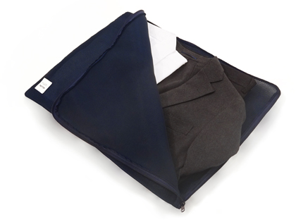 | (2) イージーケア性 | ポリエステル特有の強度によりしわになりにくく、出張時や長時間の移動にも最適です。 手洗い、洗濯機洗いが可能(コートを除く)なため、汗を気にせず着用可能な利便性と快適性を備えています。 |