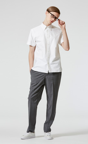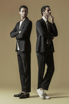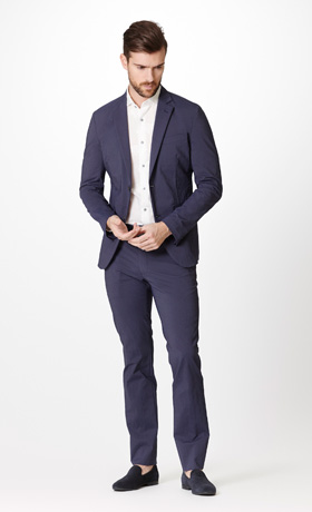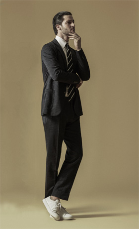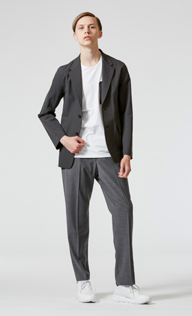 | 伸縮性のある素材を使用しているため、アクティブに動くビジネスマンに快適な着心地を実現しながら、オフィスに相応しい"きちんと感"といった端正な外観も併せ持つジャケット&トラウザーズ。セットアップスタイルはもちろん、単品でも幅広くコーディネートしやすい汎用性の高いスタイリングが可能。インナーにTシャツやカットソーを合わせればカジュアルシーンにも対応でき、オンオフ問わず演出できます。また、足元にスニーカーを合わせれば、スニーカースタイリングもお洒落に着こなせるアイテムです。 |