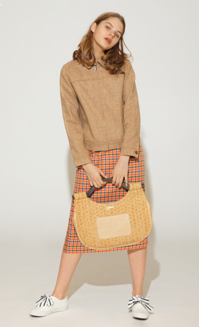 | ビビッドなオレンジギンガムのタイトスカートとストライプリボンのスニーカーを合わせ、かたい印象になりがちなジャケットスタイルに女性らしさをプラス。程よいリラックス感のあるカジュアルなスタイルを提案します。足元のスニーカーは、英国Admiralオリジナルスニーカー『BRIGHTON』をベースに、シューリボンを通すハトメを小さくし、ゴールドにしたブランドらしいディテールに仕上げた一足。シューリボンは取り外しができ、スリッポンとしても履ける2WAY仕様になっています。 |