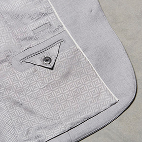 | オーダーのステップ | Step 1: アイテムをセレクト Step 2: 表地をセレクト Step 3: 裏地、ボタンを選び、内ポケットや袖口の仕様を決めてカスタマイズ Step 4: 基本サイズ決定、採寸による調整 |