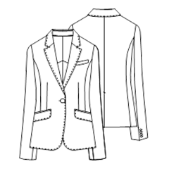 | デザイン特徴 | ![]() ジャケットの1ツ釦タイプ。 スカートにもパンツにも合わせやすい。立体的なパターンで着心地を追求。正面からのシルエットが細く見えるデザイン。 |