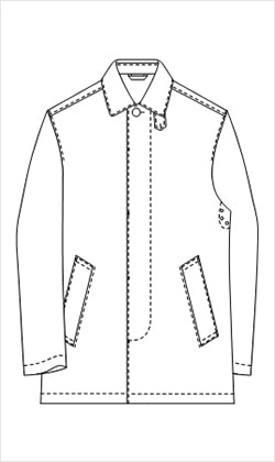 | 内容 | 表地の素材、ボタン、裏地、ライナー、ハトメの仕様などを選び、袖丈の調整、オリジナル織りネームにお客様の名入れができるサービス | |
