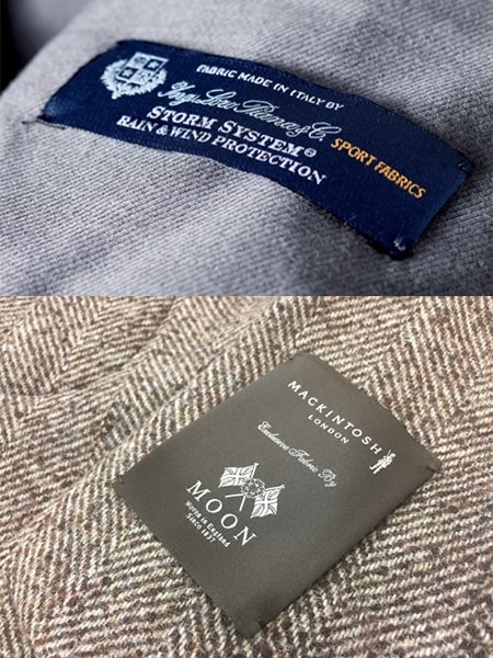 | 素材の種類 | 表地 | 5種類・・・伊ロロピアーナ社製ドリームツイードストームシステムや英ムーン社製ツイードなどのインポート生地及び国内生地。(ネイビー、ベージュ、グレーなど) |