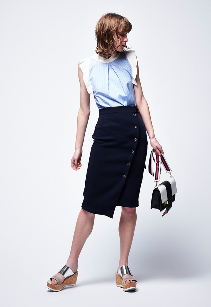 着回しに加えて着方によって印象を変えられることも特徴で、例えば「2in1レイヤードスカート」は外側のラップスカートのフロントボタンの開閉具合により印象チェンジが可能。内側のマキシスカートは柄の面をどこにするかで見え方が変わります。着回しと着こなしが楽しめる旅行にお持ち頂ければ活躍度抜群のマルチウエアです。