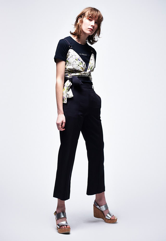 フラワープリントと無地とのリバーシブル仕様ビスチェとパンツのセットアップ。ビスチェは取り入れるだけでリゾート感が出て旅行にぴったりなアイテム。お手持ちのTシャツやシャツワンピースの上に合わせるのもおすすめです。