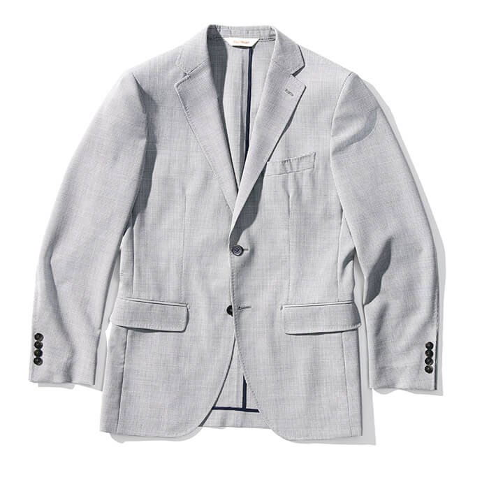 ジャケットを着ることに抵抗があるような暑さの中でも、いつ誰に会うか分からないから、きちんとした装いで臨みたい海外出張。「ドットエア」と呼ばれる機能素材に超高精細なツイード柄のプリントを施したこの一着は、一見クラシックなサマーツイードに見えるものの、生地に無数の細かい孔が開いているため抜群の通気性と軽さが特徴。ストレッチ性にも優れ、夏のトラベルや出張でも快適な、これからの季節におすすめのアイテム。