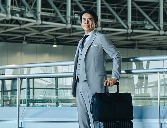 シーン2.<海外出張で> → 移動の持ち運びにも安心、フォーマルな装いでも使える