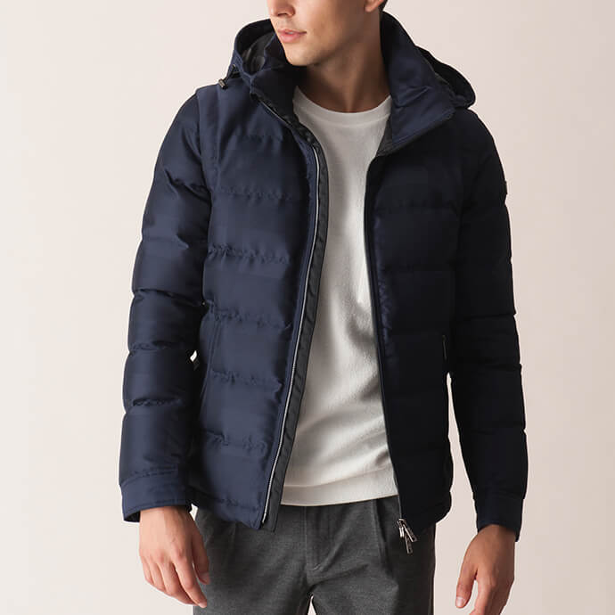 ジャケット中心のスタイリングが多い当ブランドにおいて、ダウンコート以外のブルゾンアイテムで冬場の売れ筋となったアイテムです。