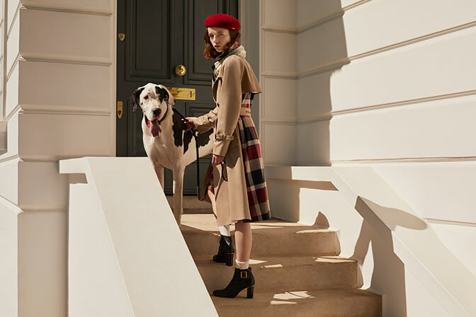 ブランドオリジナルのクレストブリッジチェックを使用したアイコニックなアウター・ドレス・雑貨を展開。定番のシグニチャーレッド、トレンドのブラウン、シックなネイビーなどカラーバリエーション豊富に展開します。リバーシブルで着用可能なダブルフェイスのケープやスカート、トレンチディテールを効かせたドレスなど、上質な素材を使用したブリティッシュプレッピーなスタイリングを提案します。また、訪日ゲストに人気のバッグやストールも型数豊富に展開します。