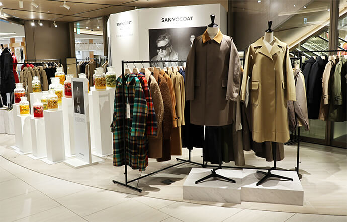 三陽商会が展開するコーポレートブランド「サンヨーコート」は、「SANYOCOAT POP-UP STORE」を1月15日(水)~2月24日(月・祝)の期間、GINZA SIX 4階フロアにて開催いたします。店装には、各業界の著名人によるポートレートやフラワーアーティスト壱岐(いき)ゆかり氏による装花のインスタレーションを展示。コートアイテムはこれまでの定番アイテムにトレンドを加味した新モデルを追加し展開いたします。また、2月15日(土)、22日(土)は当日ご購入いただいたコートに刺繍アーティスト「nuico」氏によるイニシャル刺繍をその場でお入れする限定イベントを開催いたします。