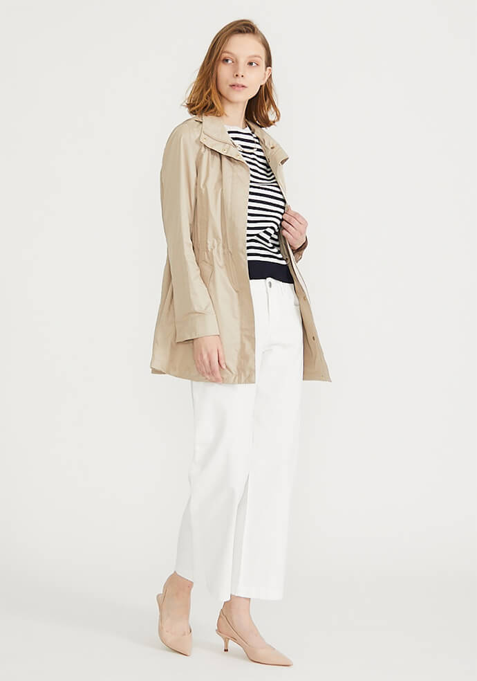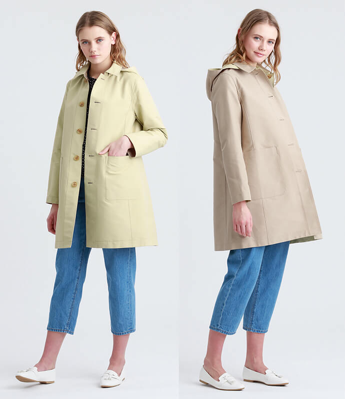| 商品特徴 | : | 花粉プロテクト機能に加え、「はっ水性」を併せ持つ素材を使用。ベーシックカラーやイエローを揃えた5色展開。スタンドカラーの襟部分にフードが内蔵できる2WAY仕様です。ウエストとフードは絞れる仕様なためお好みのシルエットにアレンジできます。梅雨の季節にもおすすめです。 ※2月下旬発売予定 |