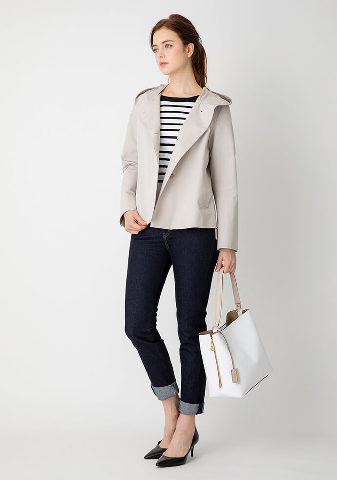 | 商品特徴 | : | 花粉プロテクト機能に加え、「はっ水性」を併せ持つフーデッドショートブルゾン。ボリュームのあるボトムにも合わせやすいショート丈で、通勤時にも着用しやすいキレイめなデザイン。梅雨の季節にもおすすめです。 ※2月上旬発売予定 |