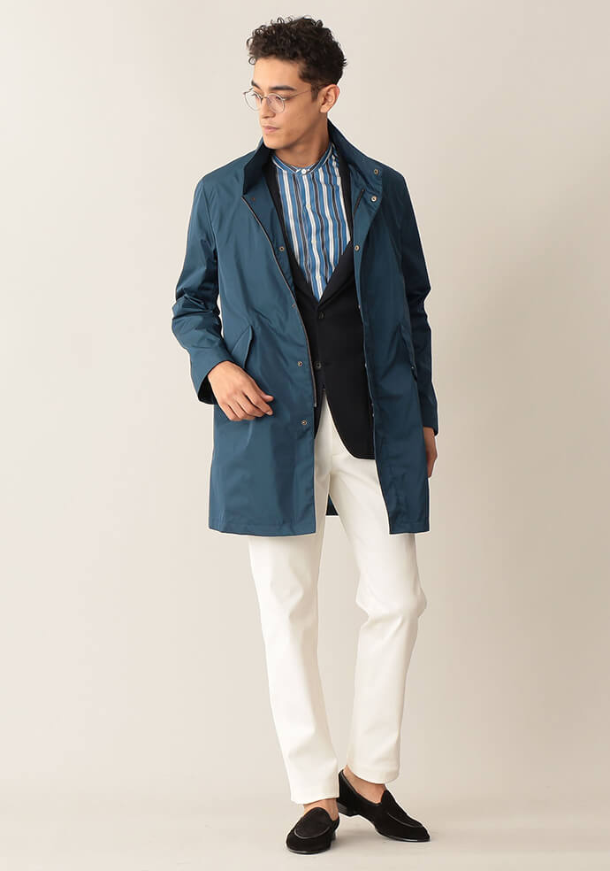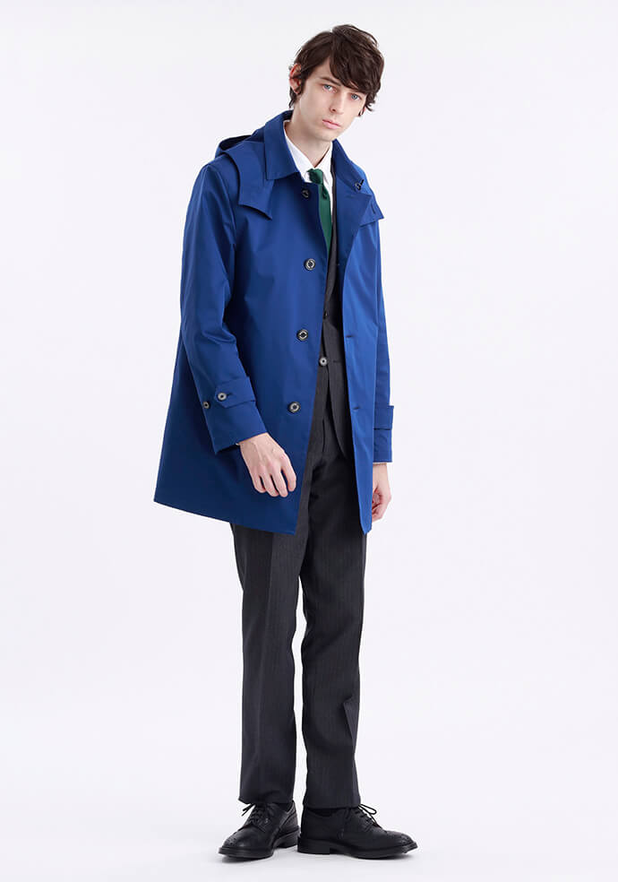 | 商品特徴 | : | 花粉プロテクト機能に加え、「はっ水性」を併せ持つスタンドカラーコート。玉虫色の光沢感があり、スタンドカラーの襟部分にフードが内蔵されている2WAY仕様です。サイドベンツにより動きやすく、カジュアルからスーツスタイルの上にも羽織りやすいスプリングコート。梅雨の季節にもおすすめです。 ※2月上旬発売予定 |
