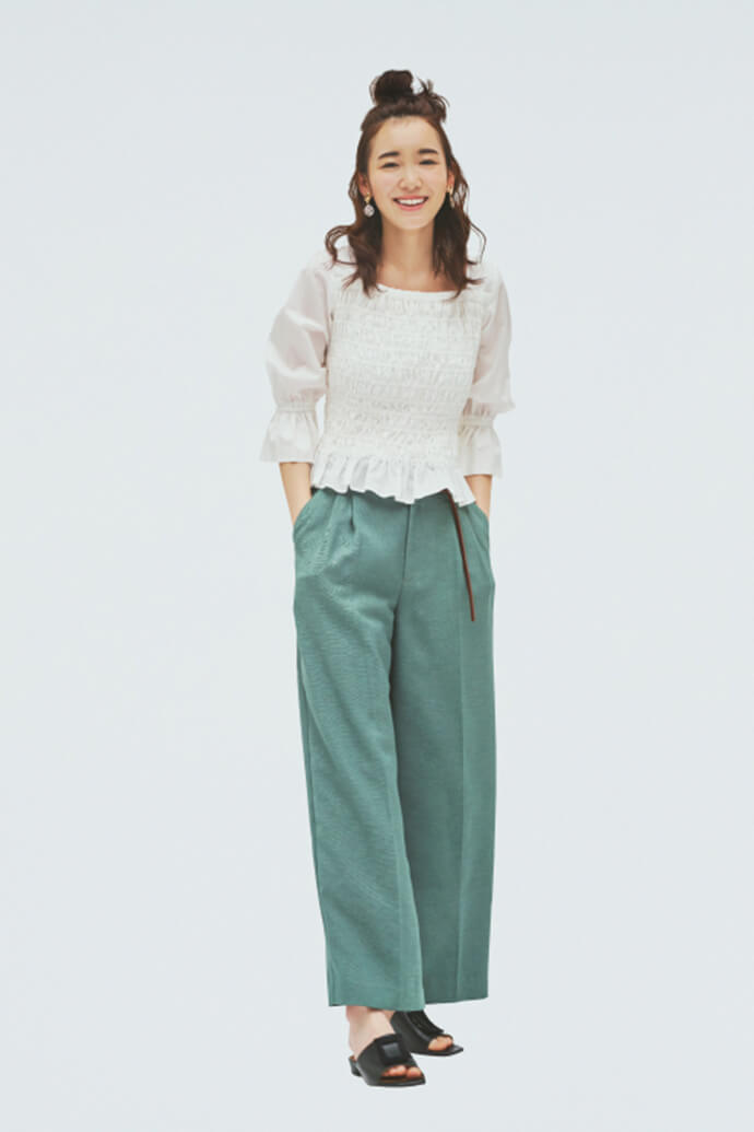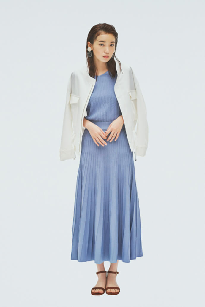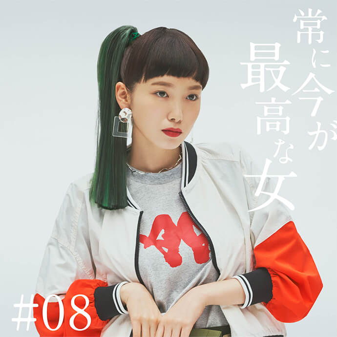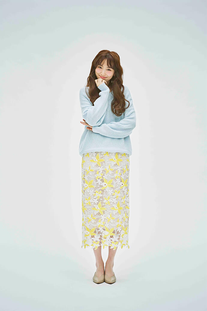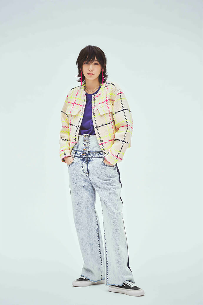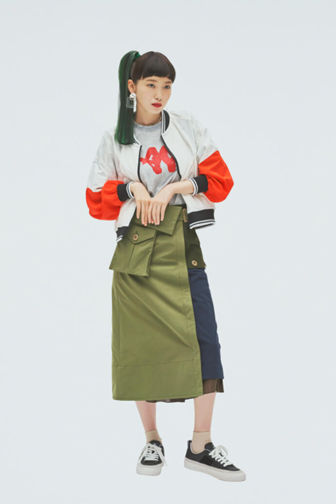 キャッチーな色が目を引くブルゾンも、凝ったディティールのカーゴスカートも、彼女の遊び心に選ばれるべくして選ばれたんだ。
