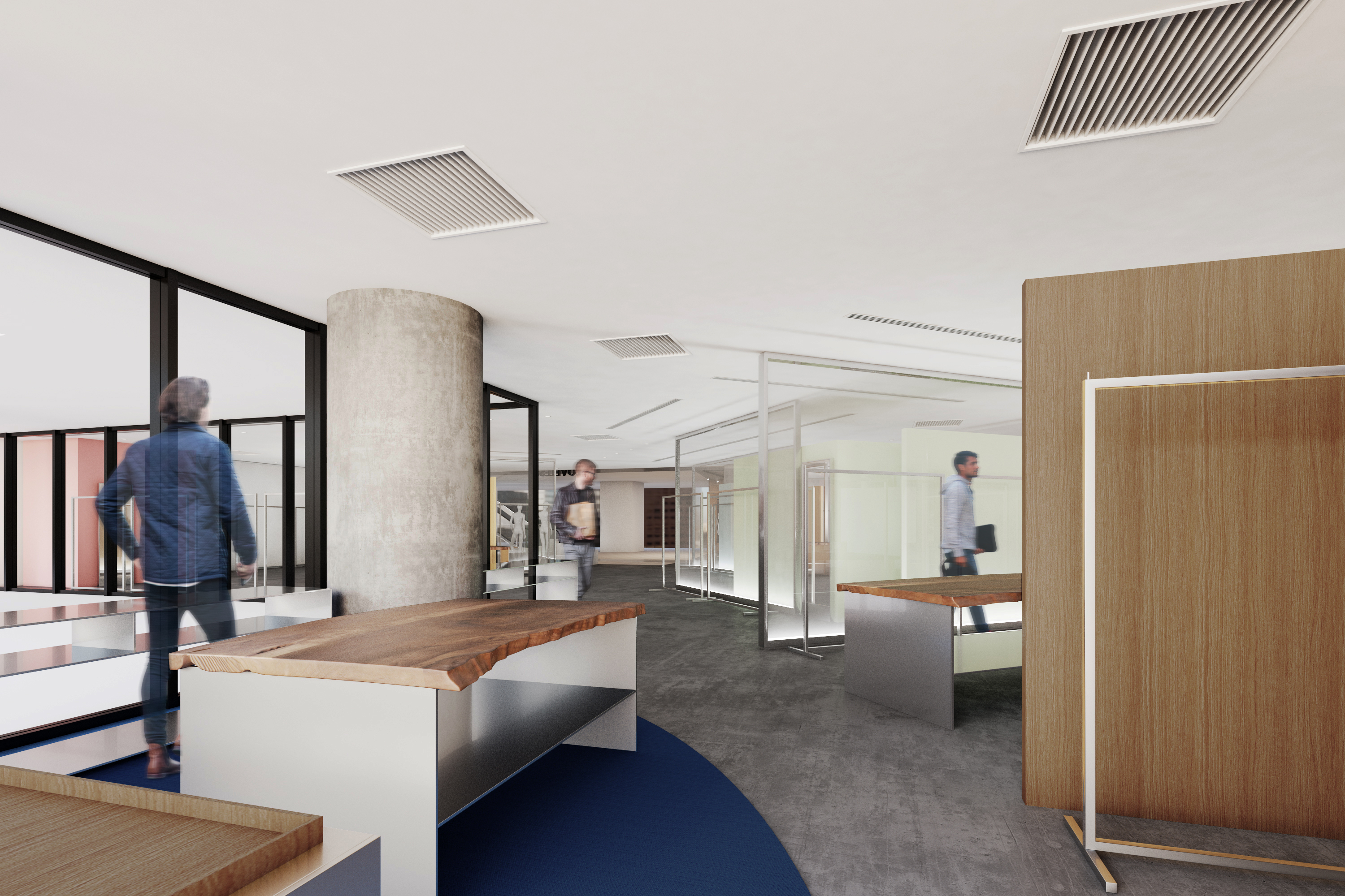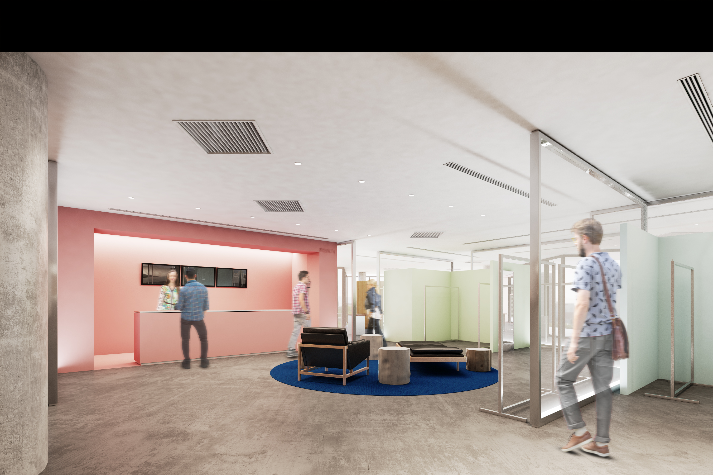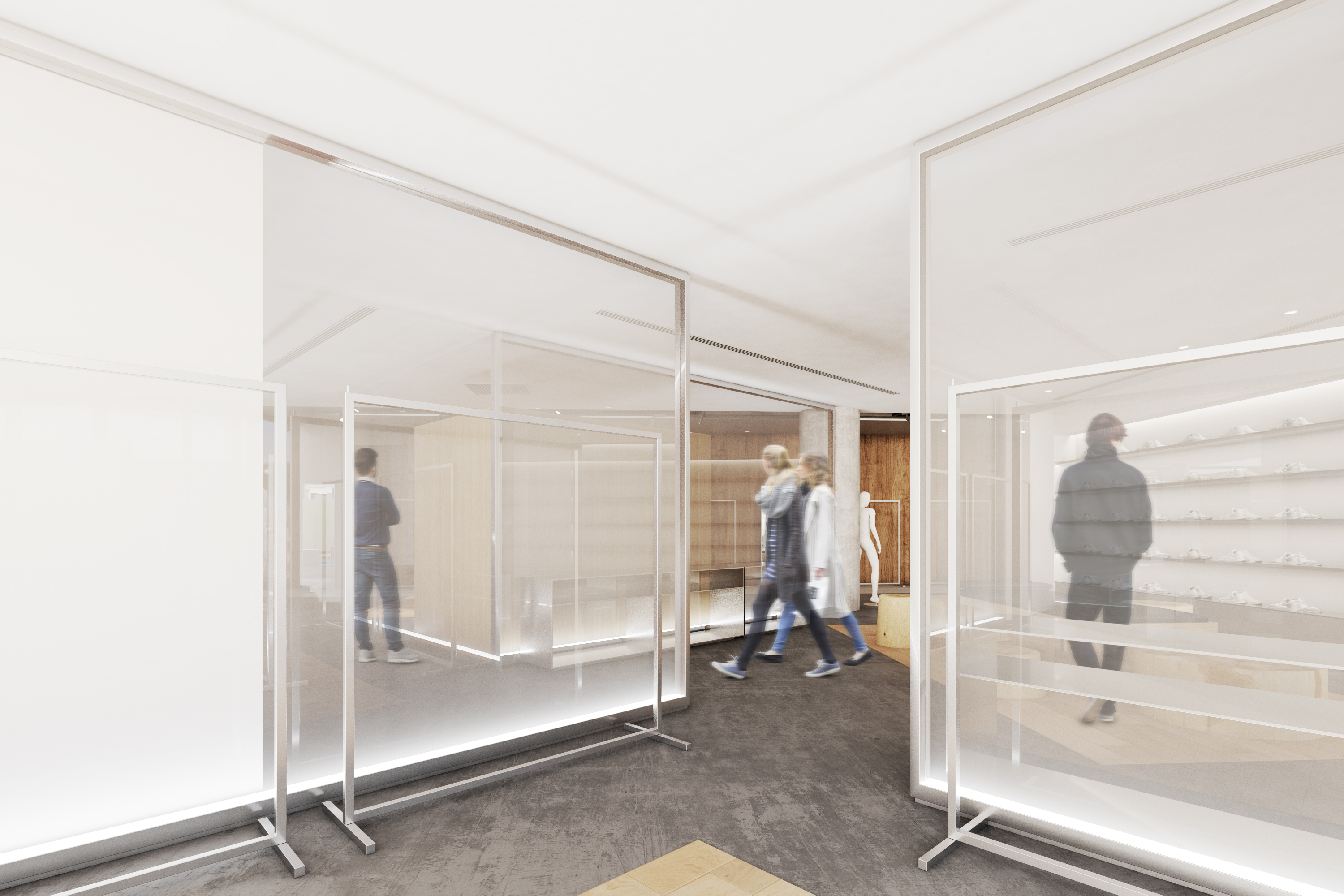 このコンセプトを体感できる場所として、内装空間は半透明のファブリックにて区切られた連続した小部屋から構成され、そこでコレクションの販売に加えてポップアップショップやアート展示など様々なモノ・コトを展開します。