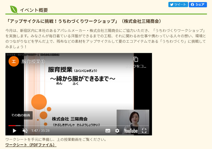 6月『こどもエコ広場新宿』三陽商会/服育授業:オンライン活動