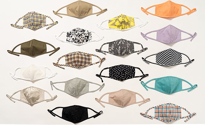 オリジナル布製マスクは、第1弾として白無地1種類を5月に発売し1時間で完売、第2弾では色や柄を豊富に揃え16種類を6月に、第3弾として9種類の新色新柄を7月に発売し、ともに数日で完売となりました。マスク着用が新たな生活様式のひとつとなり、マスクがファッションのひとつとして取り入れられるようになったことから、第4弾では秋冬シーズンに向けて25種類の色や柄をご用意し、数量限定で発売いたします。