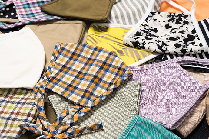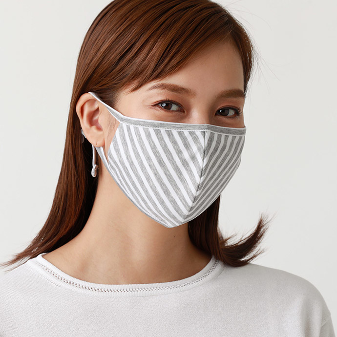 オリジナル布製マスクは、立体裁断に加え、紐にアジャスター機能を付け男女問わず幅広くサイズ調整ができるようにし、フィット性の高さを実現しました。国内工場での厳しい品質管理の下生産しており、布製のため繰り返し洗って使用できます。表地には洋服に使われる様々な色や柄の生地を、裏地には抗菌防臭ダブルガーゼを使用。第4弾では、内側にポケットを付けフィルターを入れることもできる仕様(※フィルターは付きません)や、息苦しさを軽減できるよう空気抜きのベンチレーション仕様など、一部のマスクに新たな機能を付けています。