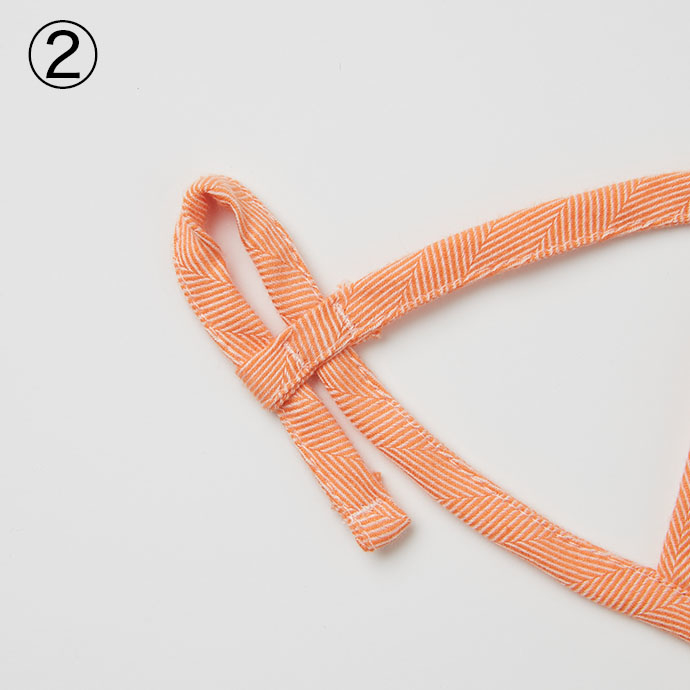表地にはブラウスなどに使用される生地を選び、紐部分は肌触りの良いコットンジャージーを使用。
