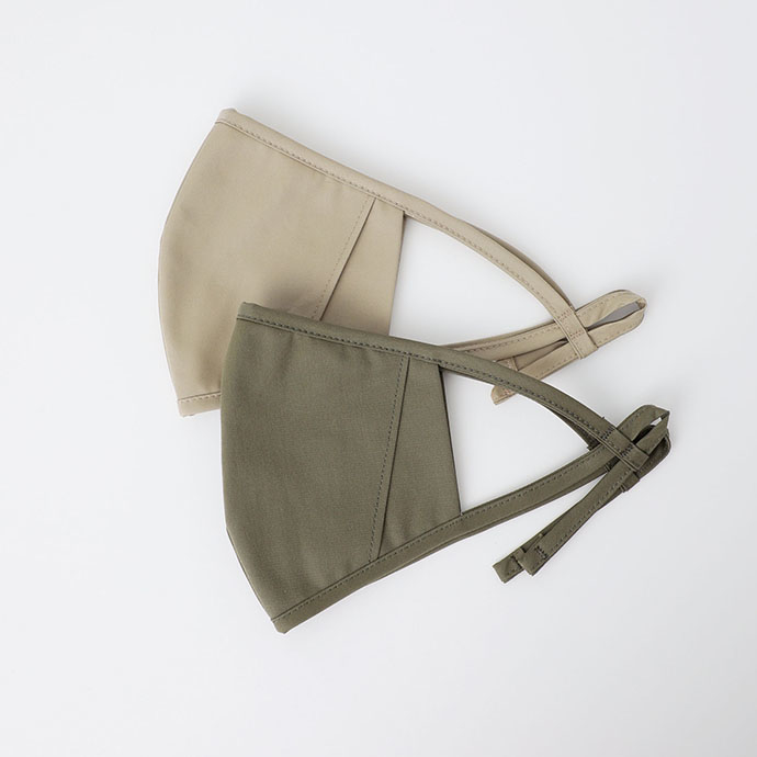 表地にはトレンチコートなどに使用される気密性の高い高密度のギャバジン生地を使用。両サイドのベンチレーションにより気密性の高さによるマスク内温度の上昇や息苦しさを緩和させます。