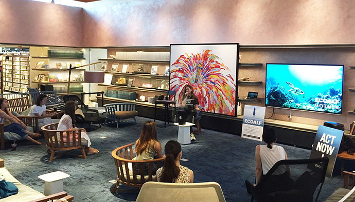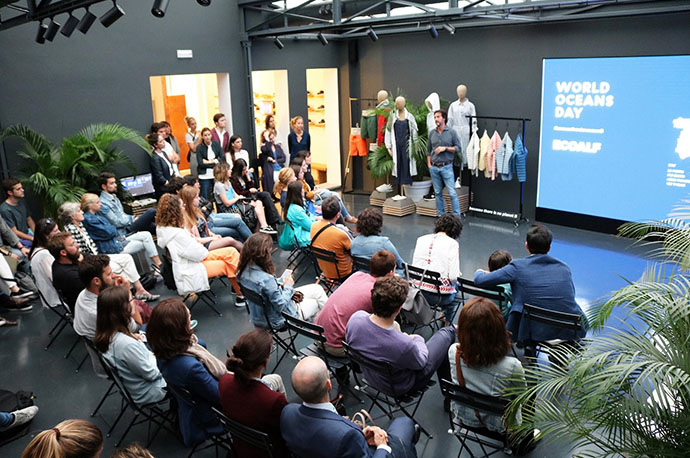 環境問題に関心が高い人々が集まり、自身のライフスタイルに取り入れることが可能な環境への配慮やアクションについて情報交換をして交流した。「ECOALF」からは、リサイクル製品の生産背景やブランドの活動を知ってもらうことで、ファッションを通じて出来る環境保全への取り組みを伝えている。