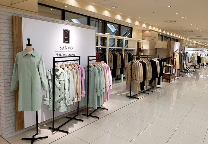 「SANYO Fitting Store 大丸札幌店」では、「サンヨーコート」及び「エス エッセンシャルズ」の2ブランドのウィメンズ商品を展開。「サンヨーコート」では"100年コート"8型をはじめ、鮮やかなカラーのスプリングコートなど、「エス エッセンシャルズ」ではコットンニット、コットンシャツ、ウォッシャブルセットアップ、ワンピース等を揃え、新生活・新学期準備の時期に合わせ通勤などのシーンにも着用できる商品構成となっています。