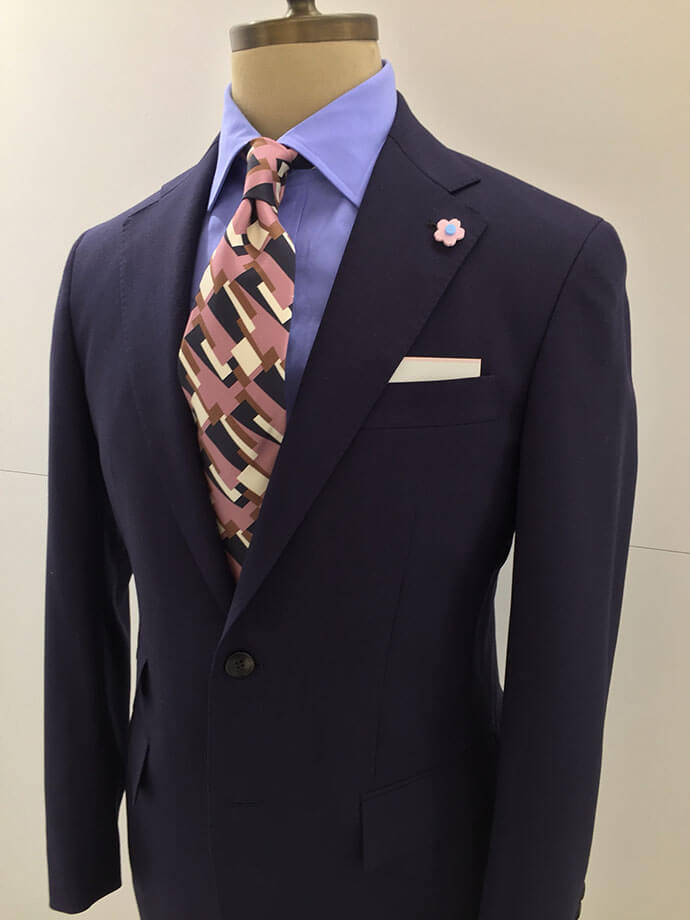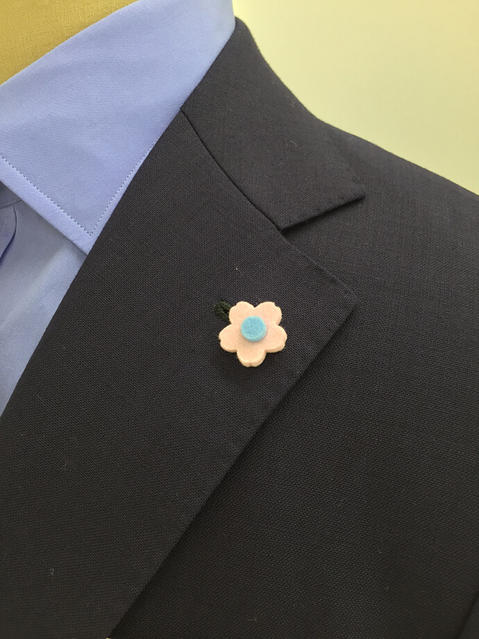 ・フラワーホールには桜のモチーフのブートニエールを使用しています。また、胸ポケットには、"桜プロジェクト"の活動を記したカードを入れて販売いたします。