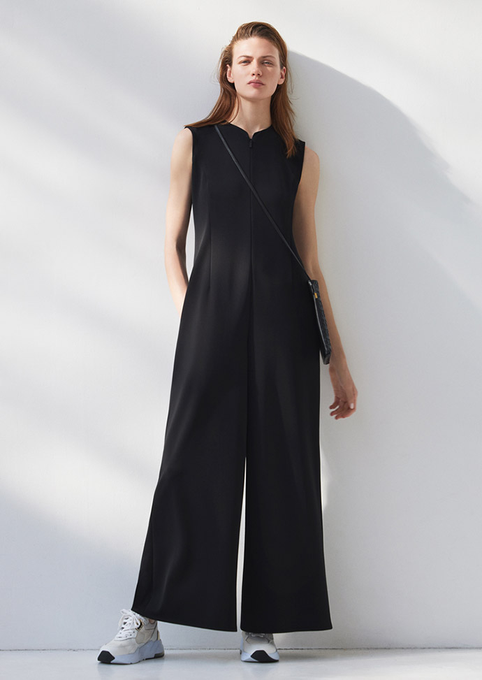 カジュアルなアイテムだからこそウエストからヒップにかけてのラインが美しく見えるように設計したコンフォータブルコンビネゾン。