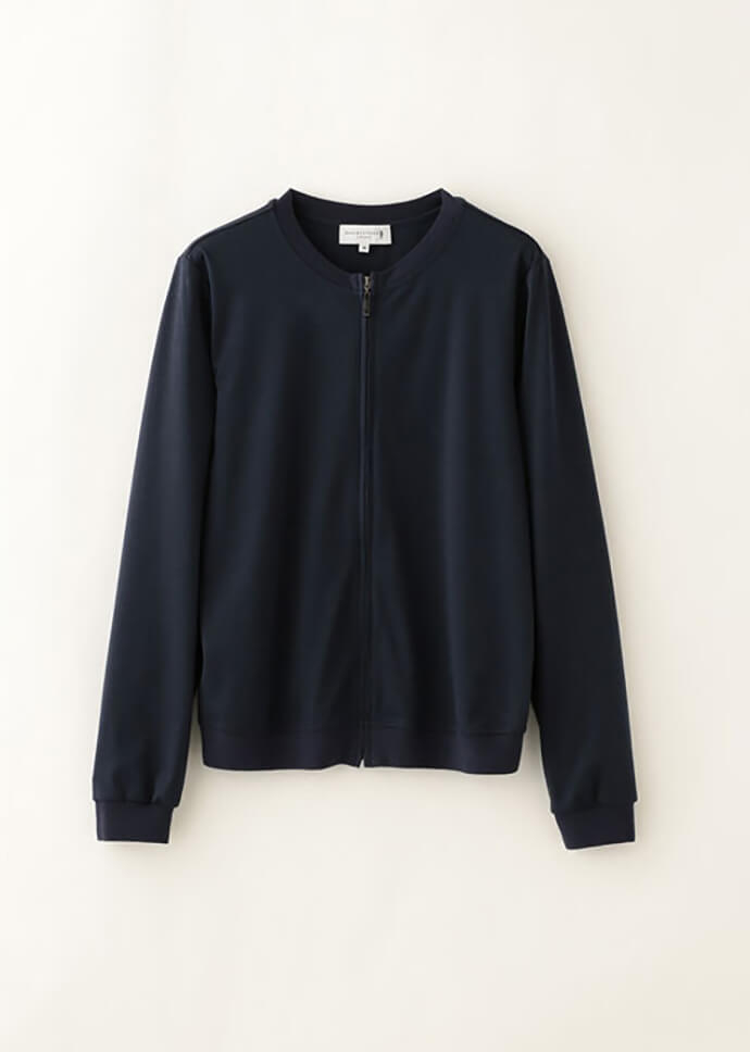 スタイリッシュなシルエットのジップアップカーディガン。インナーやボトムとの合わせ方次第でカジュアルにもきれいめにも装えます。ブラックやネイビーは、同素材のパンツとのセットアップでの着用もおすすめ。