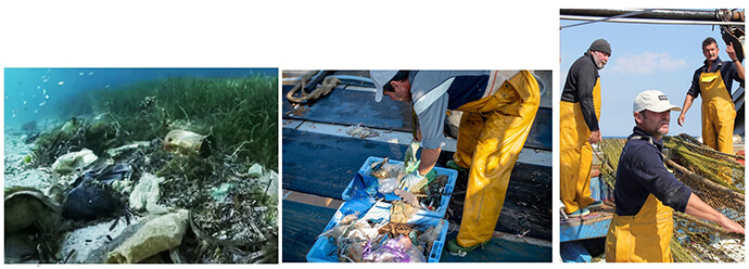 漁師が引き上げた海洋ゴミのペットボトルをリサイクル