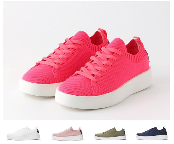 「UTOスニーカー」シリーズは、海洋ゴミを回収し新たな製品に生まれ変わらせるプロジェクト「UPCYCLING THE OCEANS (UTO)」(アップサイクリング ジ オーシャンズ)により回収された海洋ペットボトルから原料を再製。環境問題になっている海洋ペットボトルを原材料としてリサイクルすることで、海の豊かさを守りたいという「環境保全」と「サステナブルファッションを伝えること」を目的に開発されたシリーズで、ポリエステル特有の軽さとニット生地によるフィット感、リサイクルのイメージを覆す鮮やかなカラーとスタイリッシュなデザインが特徴の、サステナブルブランドを象徴する商品としてご提案いたします。