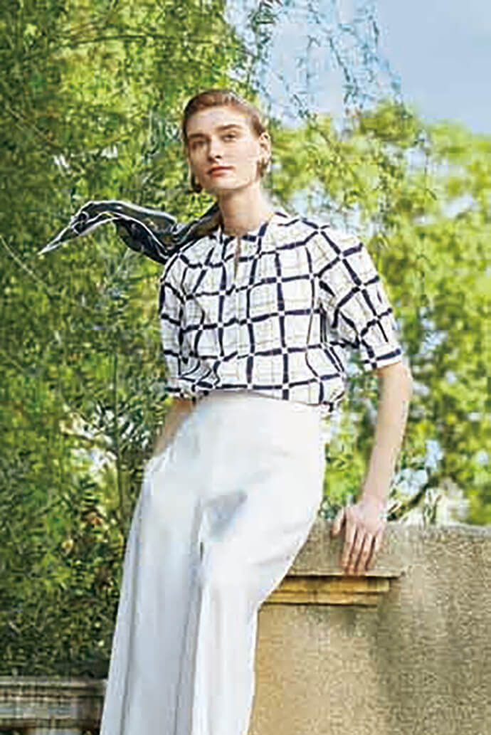 ジャケット ¥50,600、ブラウス ¥39,600、パンツ ¥36,300