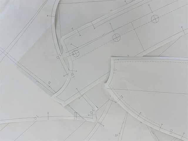 こうして縫製過程で生じる歪みやサイズ感のズレを防ぎ、縫製の際に縫いやすく設計通りのサイズ・シルエットに仕上がる緻密なパターンを作成することで、正確な縫製による同じクオリティーの製品を作り続けています。