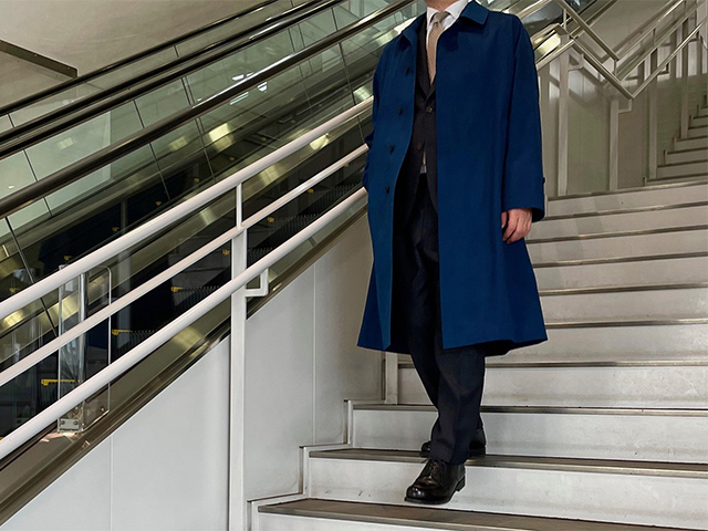 - ・コートの顔ともいえる襟は手作業で縫製し、襟が首になじみ、襟を立てたときに美しいシルエットとなるように仕上げています。