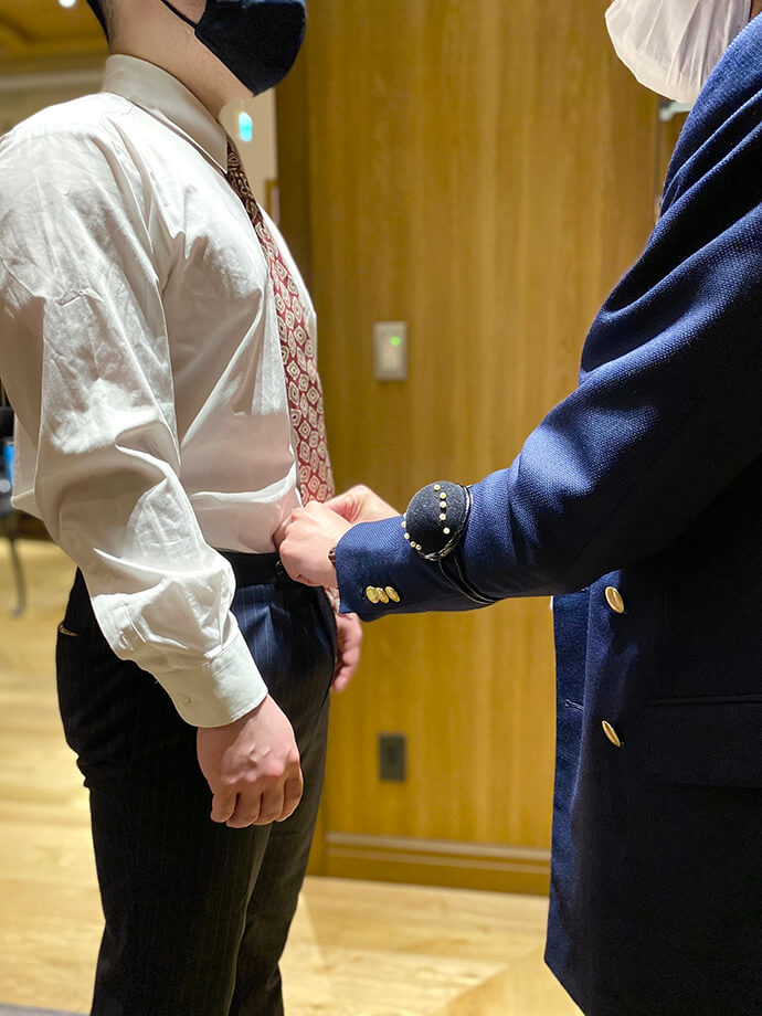付属品の手配・取付けやパンツの丈詰めなどを