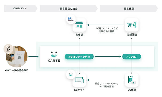 本取り組みを通じて、「CB CRESTBRIDGE」の「お客さまのすべての日常に寄り添う」というコンセプトを体現した新たな店舗体験の実現を推進していきます。NRIデジタルとプレイドは、オフラインとオンラインの様々な接点における顧客体験をシームレスにつなぐ共通基盤の開発およびその活用支援を共同して展開してきました(※3)。主に、店舗における行動データの解析はNRIデジタルが開発したSaaSインテグレーションサービス「OMO OnBoard」が、ECにおける行動データの解析とオフラインとオンラインのデータの統合はプレイドの提供するCXプラットフォーム「KARTE」が担います。