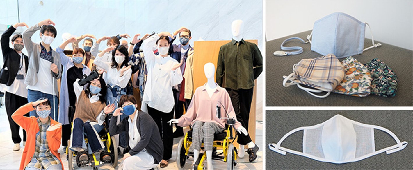 新型コロナウイルス感染拡大の影響でマスクが1年を通して必要なものになったことを受け、新たな発想とアイデアで「マスク」を考える取り組み「コオフクマスク」が開催されました。この取り組みでは、アパレルメーカー3社が参加し、障がいをもつ方が、既製の「マスク」ではつけにくい、こうしたらもっとつけやすいといった悩みや課題を出し合い、各社の知恵を活かしながらアイデアを具現化することで、製品化に繋げました。