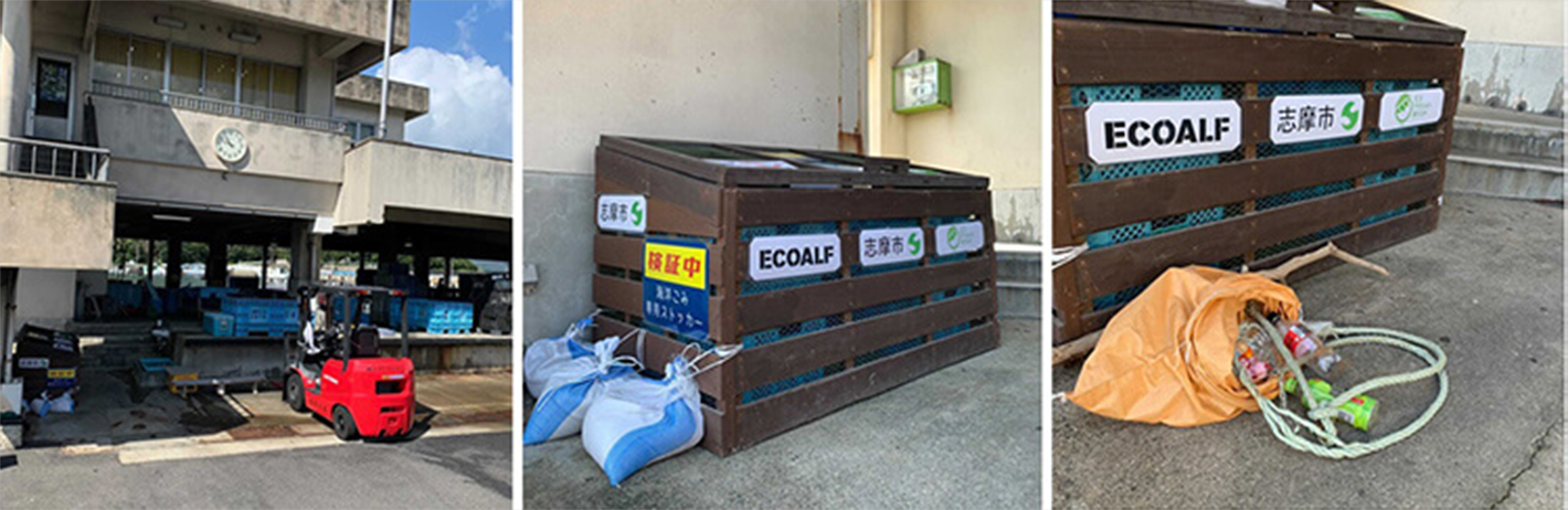 志摩市が主体となり三重外湾漁業協同組合安乗事業所の協力を得て、安乗漁港内に海洋ゴミストッカーを設置。漁業者の方に、漁の最中に網にかかったペットボトルをはじめとする海洋ゴミを陸に持ち帰っていただき、ストッカーに投入する実証実験を開始。(2021年)